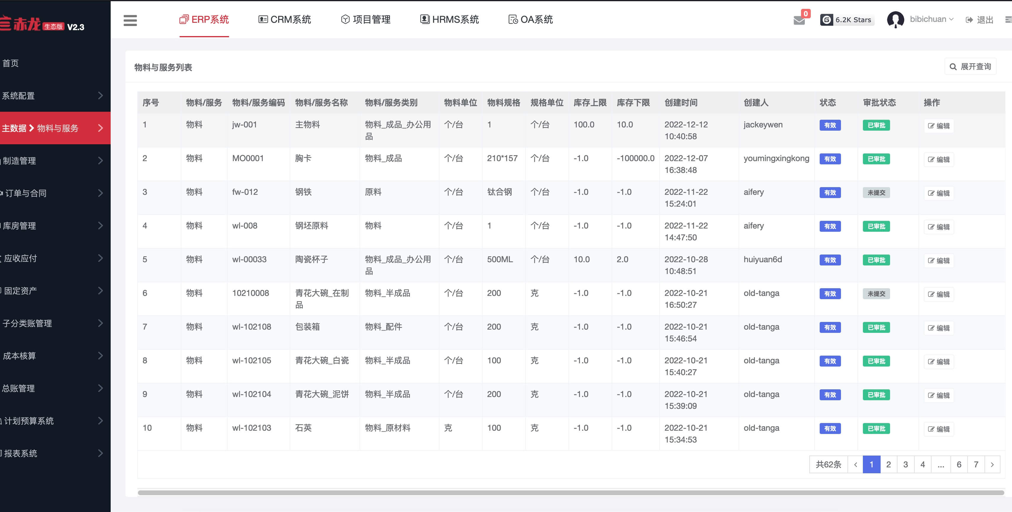 我获取了免费的账号,进去之后看了看,很多我都不明白,也没有简单的增删改查之类的,我总是找不到入口,是不是体验版没有这些功能呢?就拿这个物料管理,里面连新增的按钮都没有,只能查询,其他的很多的东西也都是这个样子的。
