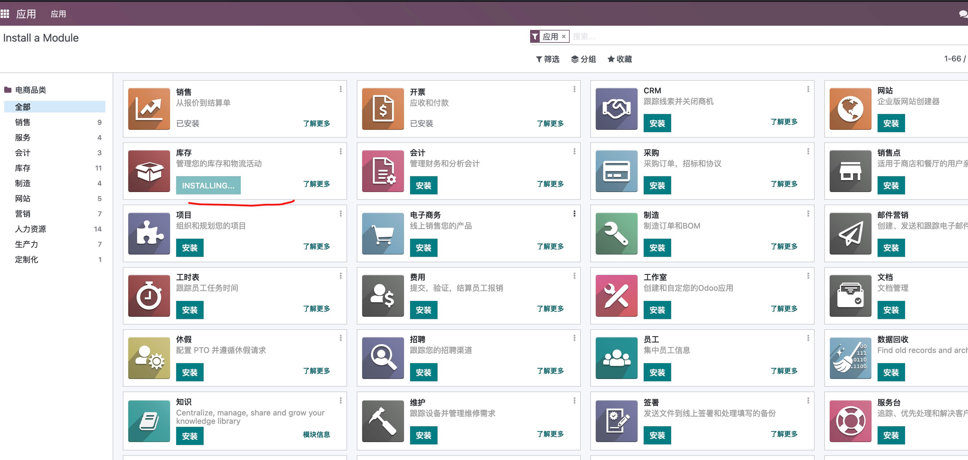 你也可以在应用商店中,安装其他的应用,比如库存,因为是试用的,所以这个安装之后,只能使用15天,15之后要付费了,这个对我没有什么影响。