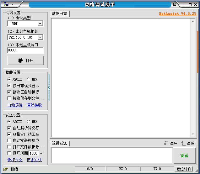 NetAssist这个工具还是挺好用的,特别适合在window的网络环境下进行网络联通测试,操作起来也非常的简单,就是开始服务,链接服务,然后测试数据就可以了。NetAssist最新版是一款专门用于网络调试的工具。NetAssist官方版支持16进制的发送与16进制接收显示,支持UDP,TCP协议,支持单播/广播,集成TCP服务器与客户端。NetAssist最新版支持间隔发送,循环发送,批处理发送,输入数据可以从外部文件导入,可以自动发送校验位,支持多种校验格式。