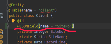 (3) 原来是要在@Entity注解的实体类的属性上使用 @JSONField(name=”SiteNo”) ,就可以实现了首字母大写。