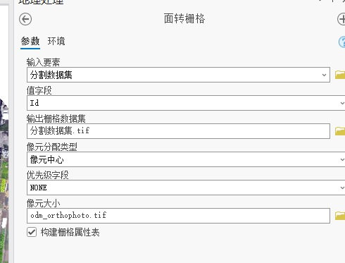 (2)矢量转栅格,生成的像素要和原始影像一直,如果像素不一致该如何去识别呢?如果直接采用生成的正射影像进行数据处理,可能生成的栅格和原始图像不一致,这样就没版本进行切分了,最好就是先把正射影像进行切分为正方形,然后再进行标注,然后进行矢量转栅格。
