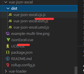为了保持源码的整洁或是在其他的机器上编译时,不需要重新编写源码,可以将源码中的 vue-json-excel.esm.js 中的内容复制一份到项目目录下,所有的修改都在这个文件中修改,引用插件的时候,也是引用这个文件,而不是 “vue”