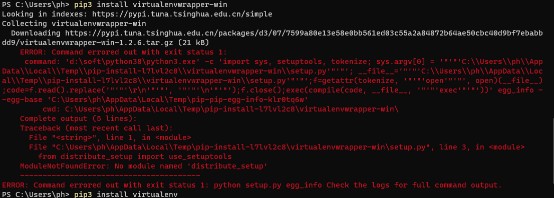 1.python安装虚拟环境时,使用pip install virtualenvwrapper-win安装失败的解决办法。 (这篇我尝试了,没有用)