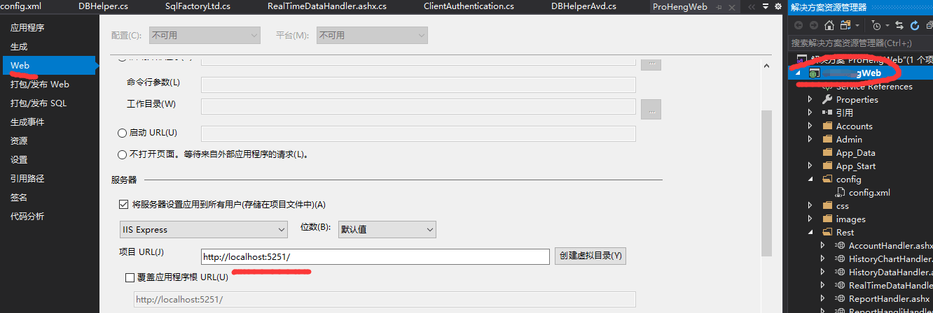 右键网站目录,然后选择属性页,选择 web,修改网址和端口,默认的是5251。