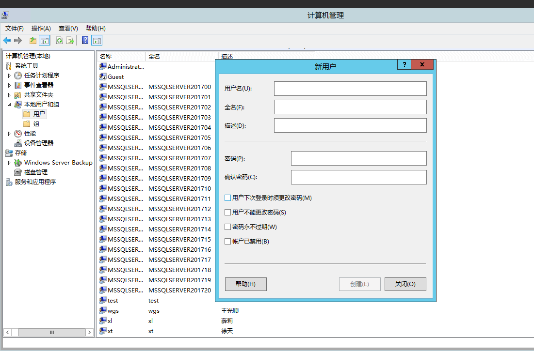 右键开始菜单->计算机管理->本地用户和组->用户,右键新建用户,添加多个用户