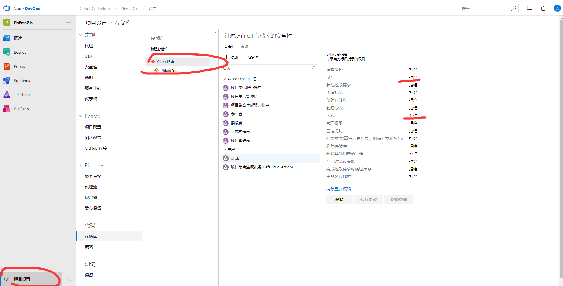 针对git仓库的权限,我有了新的发现。当在 Azure DevOps Server 管理控制台,将用户设置为添加到管理员组后。管理员组用户可以管理全部仓库,拥有全部的权限。