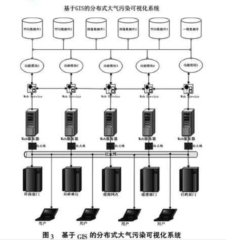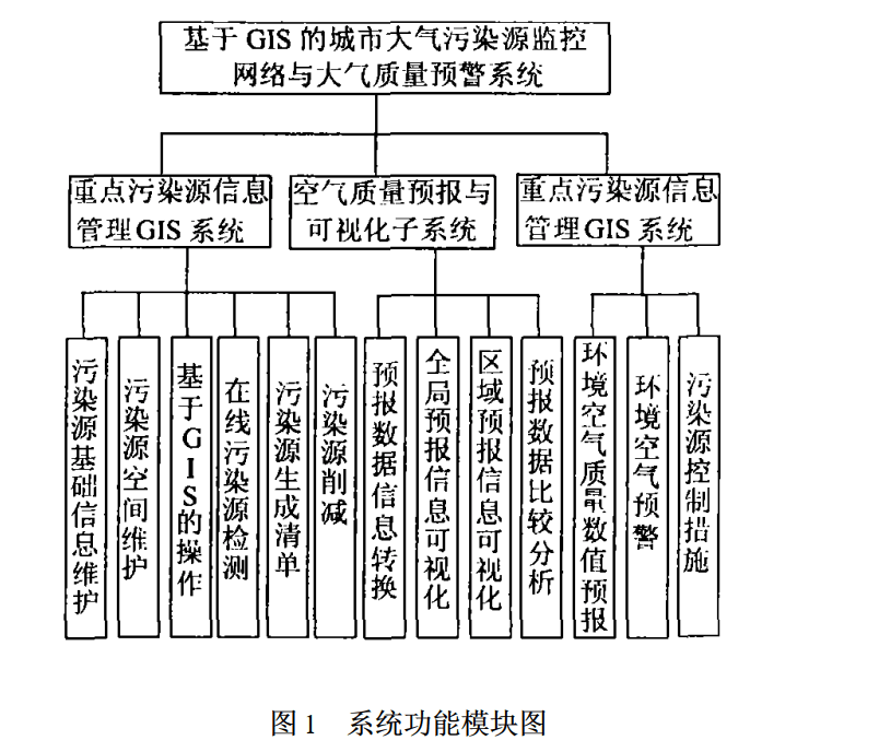 分析:这篇论文使用c\s体系结构开发,主要论述了系统的设计思路和实现,对关键技术的说明。实现了重点污染源信息管理 GIS 子系统、空气质量预报及可视化子系统,同时还借住了三维展示平台。污染源管理,主要是污染点的信息管理,空气质量预报:通过对不同日期的数值预报数据的载入 ,实现对在预报区域范围内的不同日期、不同时间、不同空间层次的不同污染物项目的静态与动态可视化。