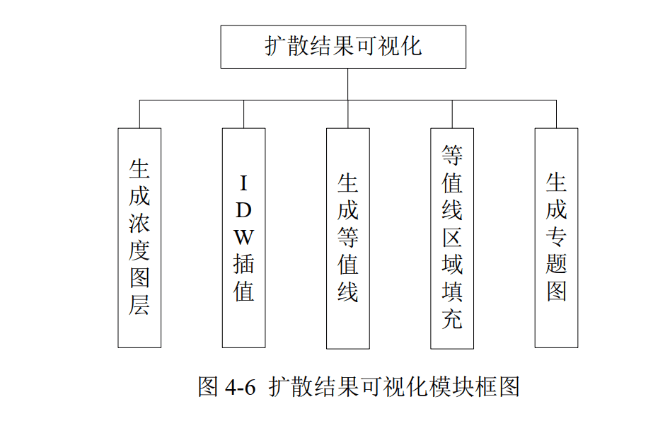 常用的大气扩散模型包括高斯模型、拉格朗日模型、三维数值计算模型以及箱式模型。扩散结果的可视化功能模块需要实现的主要功能包括浓度图层的生成、 IDW插值、分级生成等值线、等值线到区域面的转换以及专题图的生成。