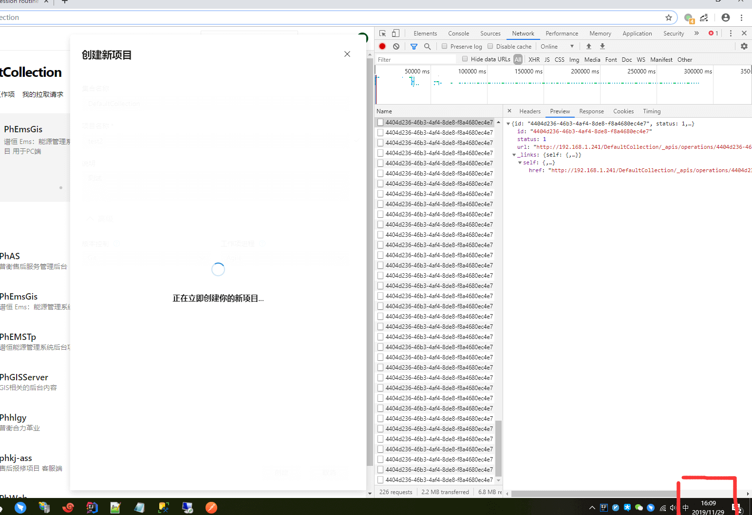 创建项目也创建不了,等了很长时间,还是创建不了,后来我关闭了浏览器,再次打开,之后创建同名的项目,却提示我项目已经存在,但是实际上项目列表里面根本就没有。