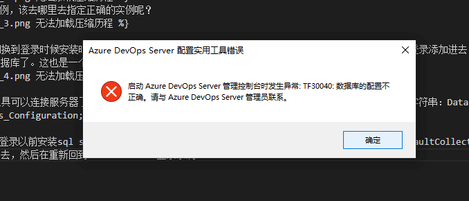(3) 数据库虽然可以打开了,但是又出现了新的问题,那就是打开AzureDevops出现了数据库连接错误。