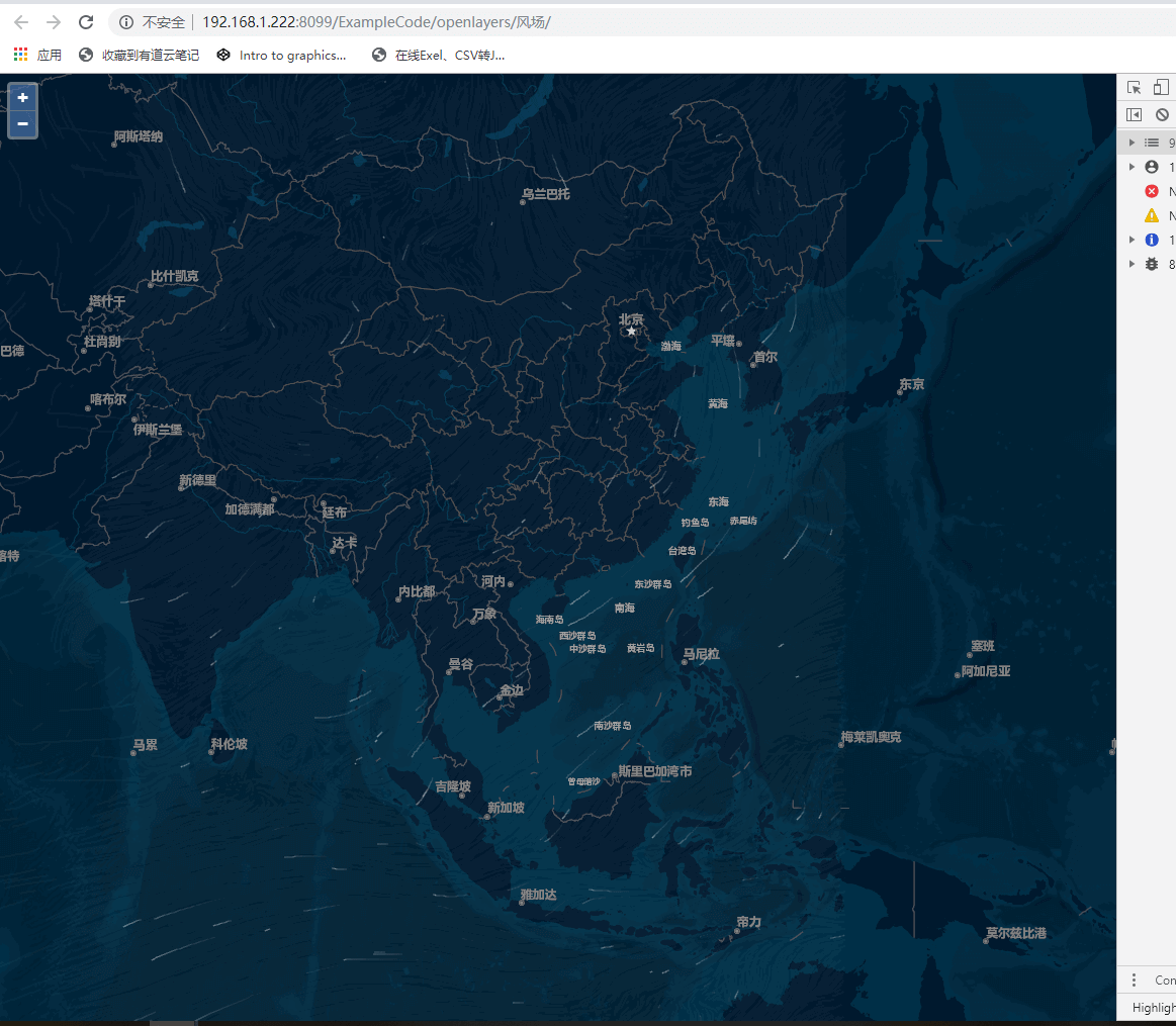 var prev = g.globalCompositeOperation; g.globalCompositeOperation = "destination-in"; g.fillRect(dx, dy, w * scale,h * scale); g.globalCompositeOperation = prev; var proj = new Vector(0, 0); var val = new Vector(0, 0); g.lineWidth = this.windThick; for (var i = 0; i < this.particles.length; i++) { var p = this.particles[i]; if (!this.field.inBounds(p.oldX, p.oldY)) { p.age = -2; continue; } proj = monitorMap.getPixelFromCoordinate(new ol.proj.fromLonLat([p.x, p.y] ,asideVue.projection)); proj[0] = Math.round(proj[0]) * scale + dx; proj[1] = Math.round(proj[1]) * scale + dy; if (proj[0] < 0 || proj[1] < 0 || proj[0] > w || proj[1] > h) { p.age = -2; } if (p.oldX !== -1) { var wind = this.field.getValue(p.x, p.y, val); g.strokeStyle = this.strokeStyle; g.beginPath(); g.moveTo(p.oldX, p.oldY); g.lineTo(proj[0], proj[1]); g.stroke(); } p.oldX = proj[0]; p.oldY = proj[1]; }