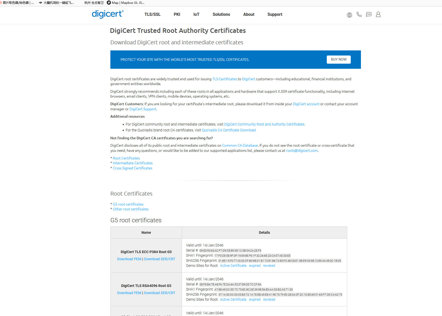 这里需要注意的就是除了要有 TLS 证书,还要有根证书,因为我用的是 阿里云 的免费证书,签发机构是 DigCert 免费版,所以需要 Download DigiCert root and intermediate certificates, 找到证书进行下载,然后上传服务器,配置 cacertfile。其实不配置根证书,也能正常的使用,根证书不是必须的。