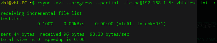 1 | rsync -avz --progress --partial 用户名@192.168.1.5::模块名/test.txt ./ |