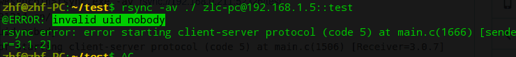 这里的 [ test ] 是模块名称,path的格式要注意,修改配置后,要重启Rsync服务(不重启也行,反正我没重启也执行成功了)。