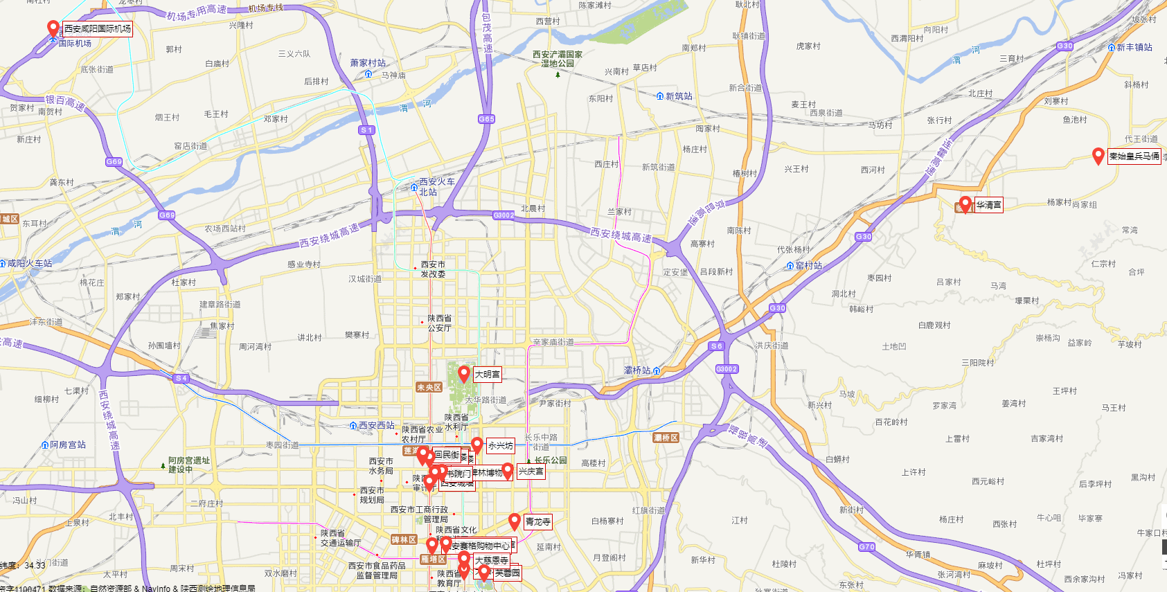 大部分的景点都集中到一起了,除了华清宫和兵马俑离得比较远,其他的都是比较近的。