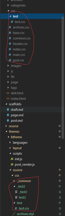 source下的css文件夹存放hexo可能会用到的css文件,再css这一级的更目录下可以自由添加任何css文件,hexo在生成文章时会自动将文件复制到public/css文件夹中,添加的styl类型文件会被编译后复制到public/css文件夹中,文件或文件夹名称带下滑线,不会自动复制,引用时可以在styl文件中通过@import引入,hexo就可以自动处理了。