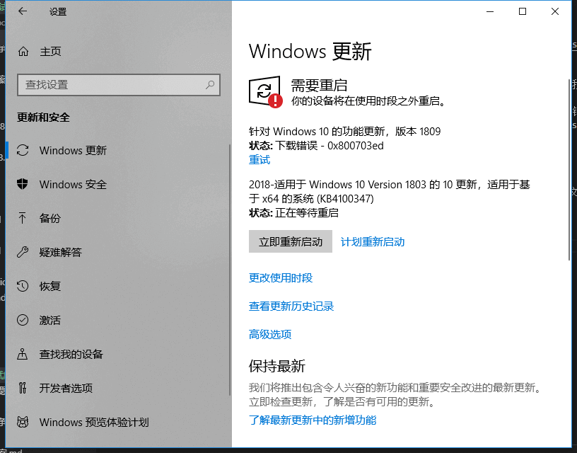 我尝试了手动更新发现1809下载错误 0x800703ed,使用谷歌搜索,进行尝试解决这个错误,看到了这个链接, 准备尝试下,使用他的工具。