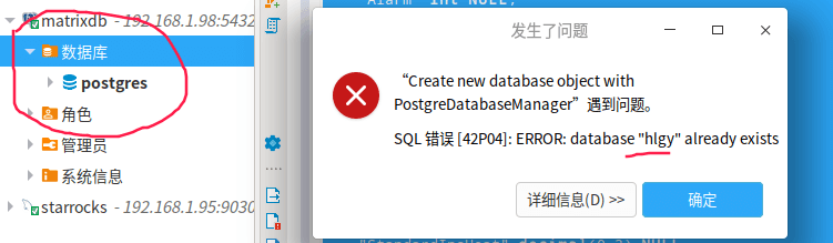 在Dbeaver中,我昨天创建了一个数据库,并且创建了一张表,后来再打开,发现已经不见了,但是再次创建同名的数据库,却提示说数据库已经存在了。