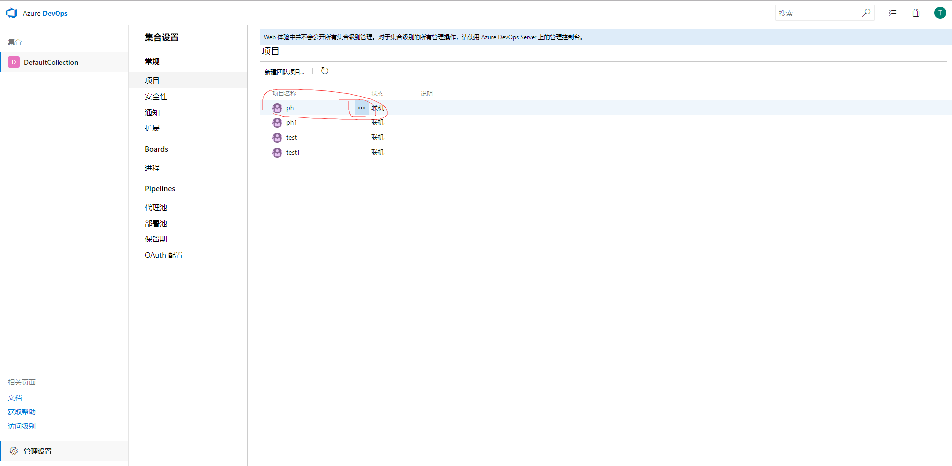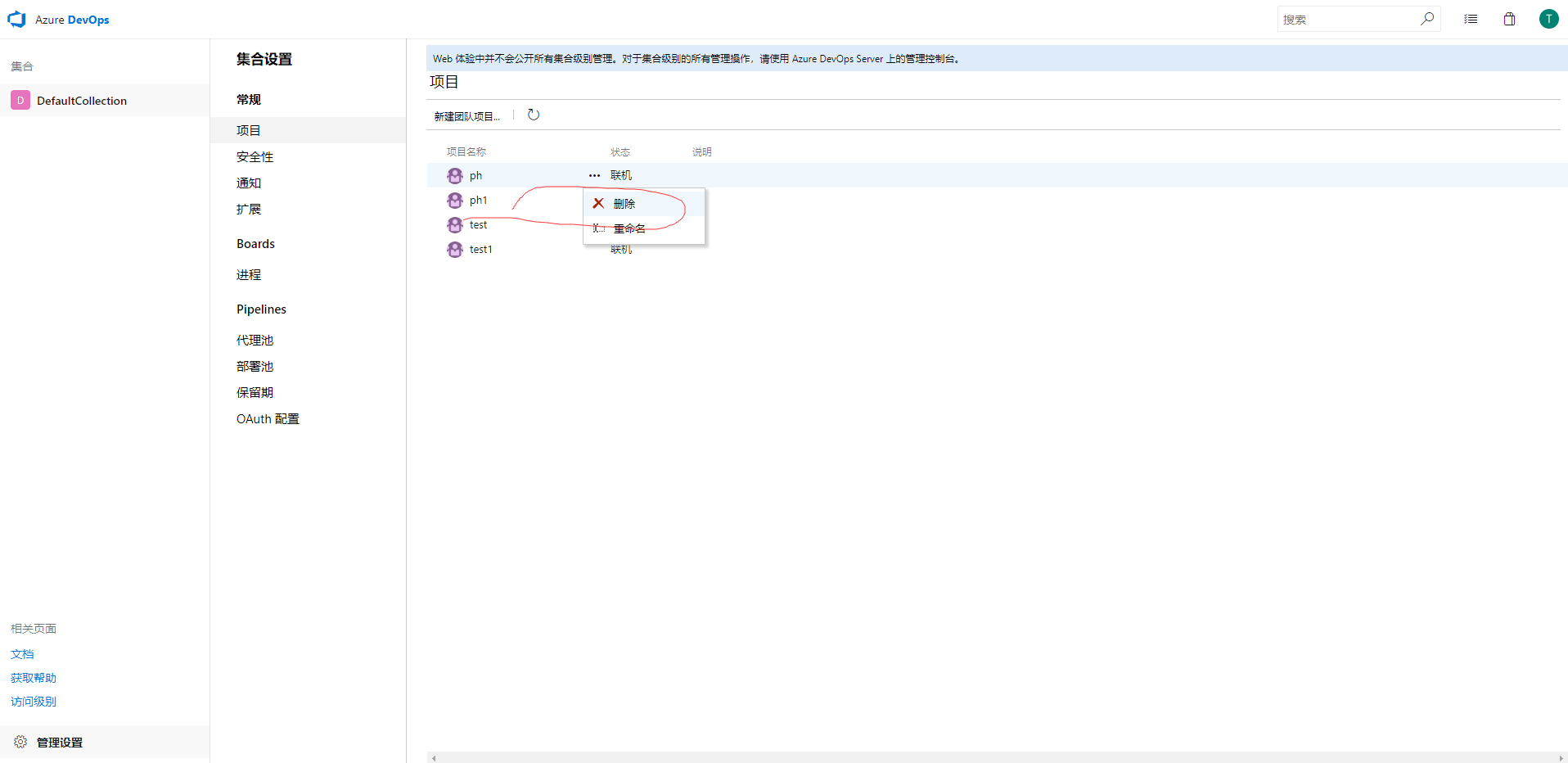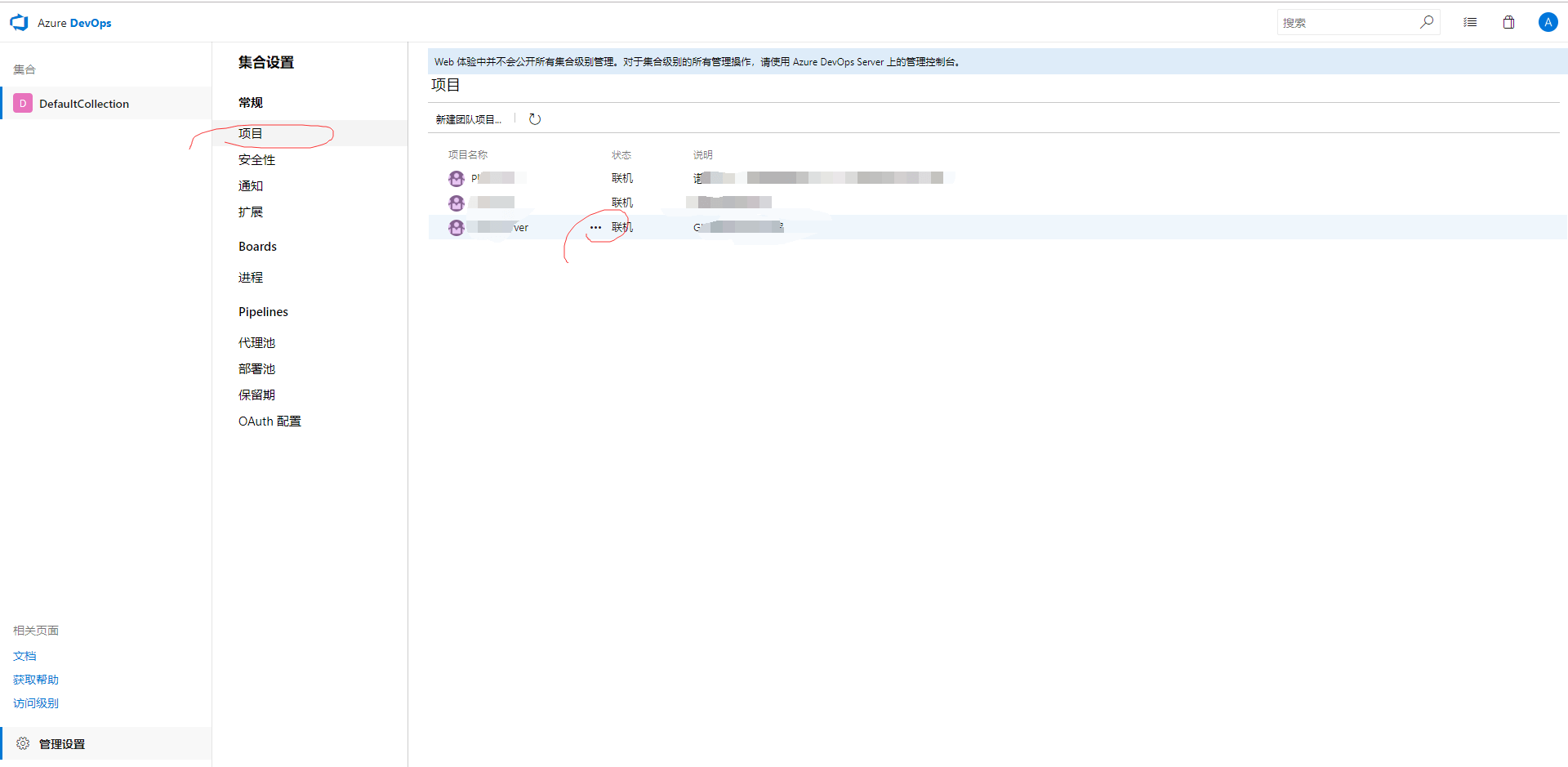 打开管理设置,然后鼠标放到项目后面,出现三个点