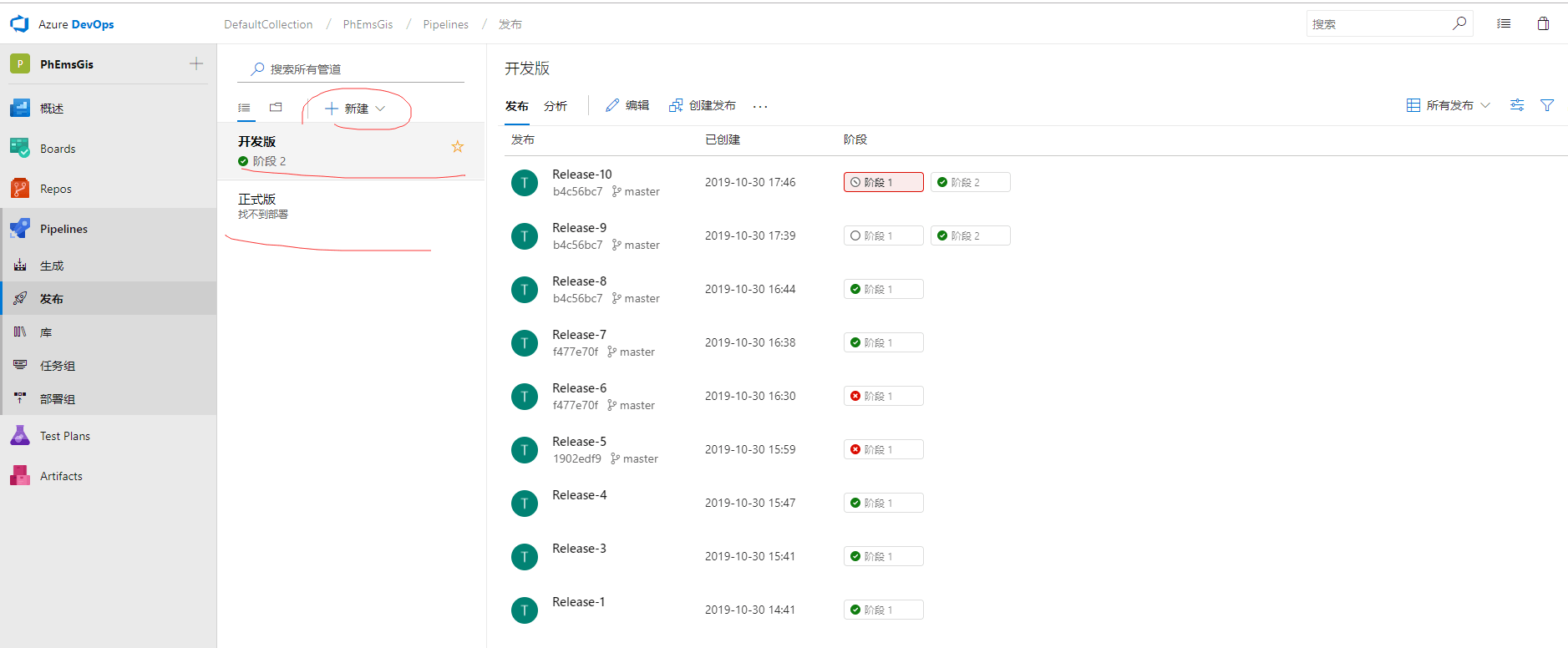 至于在一个发布里面添加多个项目,和一个发布管道里面添加多个阶段。我是这样理解的。一个发布管道中的多个项目,意思是所有的项目都可以需要执行后面的阶段,阶段又分为并行阶段和串行阶段。并行的阶段是两个并排一起的,可以同时进行。