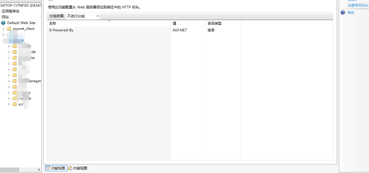 axios为了实现跨域访问,这里使用IIS进行实例。要是实现跨域访问,打开IIS服务器中HTTP响应头一栏,看到里面只有一个选项: