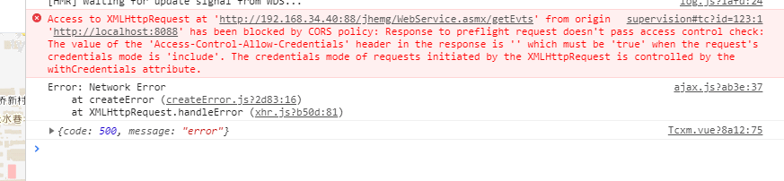 最后大功告成:(这里错误是服务器错误,不是跨域的问题)