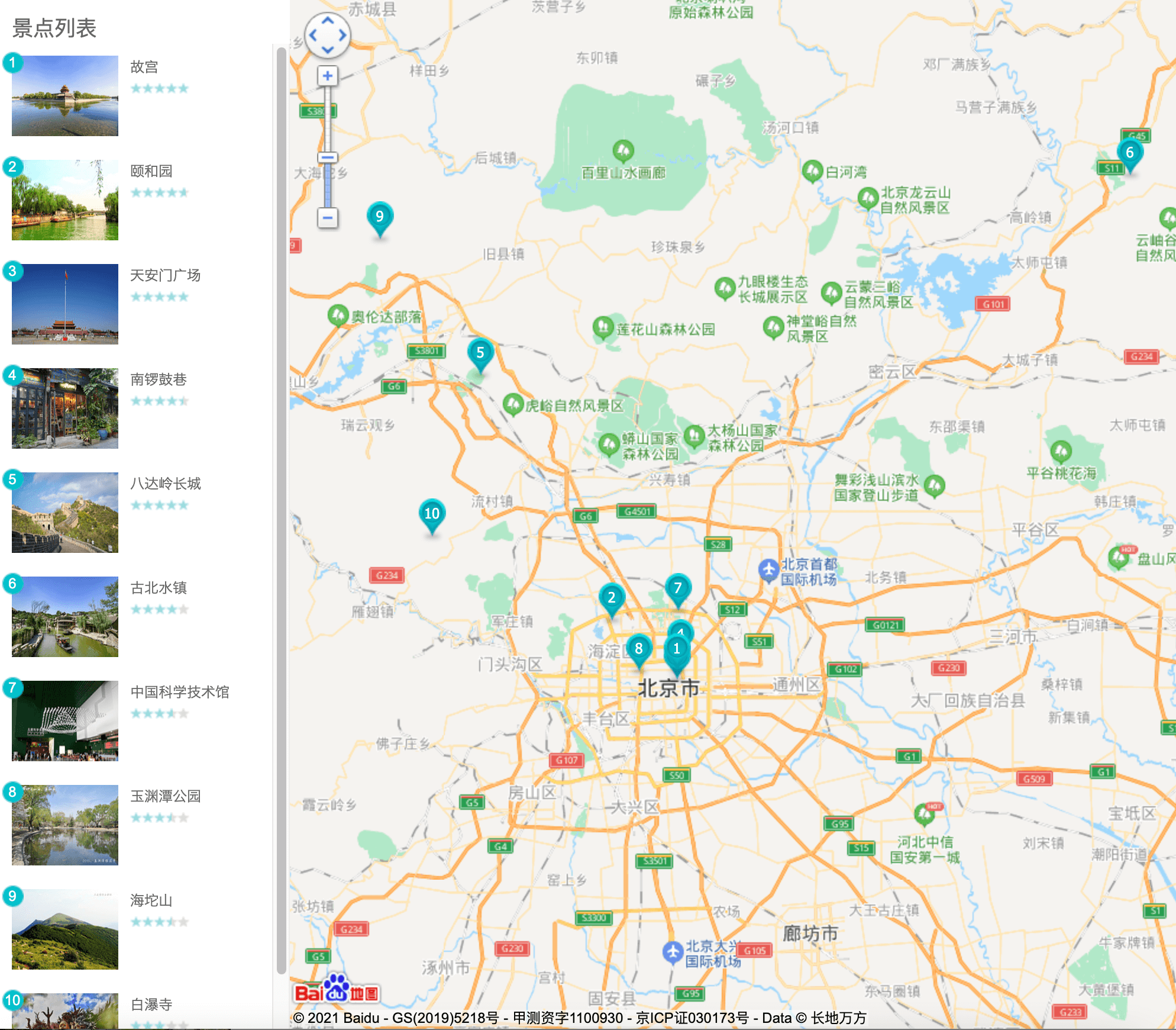 故宫->天安门广场->王府井->颐和园->八达岭长城->天坛