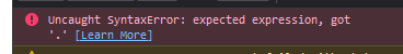 (1) Uncaught SyntaxError: expected expression, got ‘.’