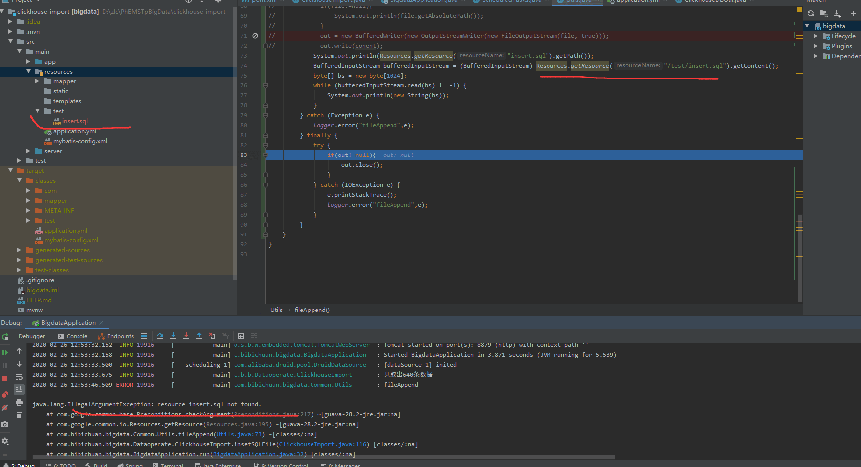 我想读取resource文件夹下的insert.sql文件