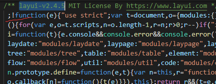 有时候,在查看别人写的库的时候,会发现一个奇怪的现象,在文件的开头是分号和叹号开头(牛逼的人写代码,都是小白理解不了的),这里以layui库为例: