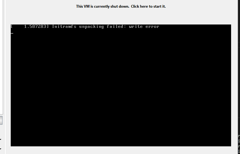 (1) initramfs unpacking failed write error