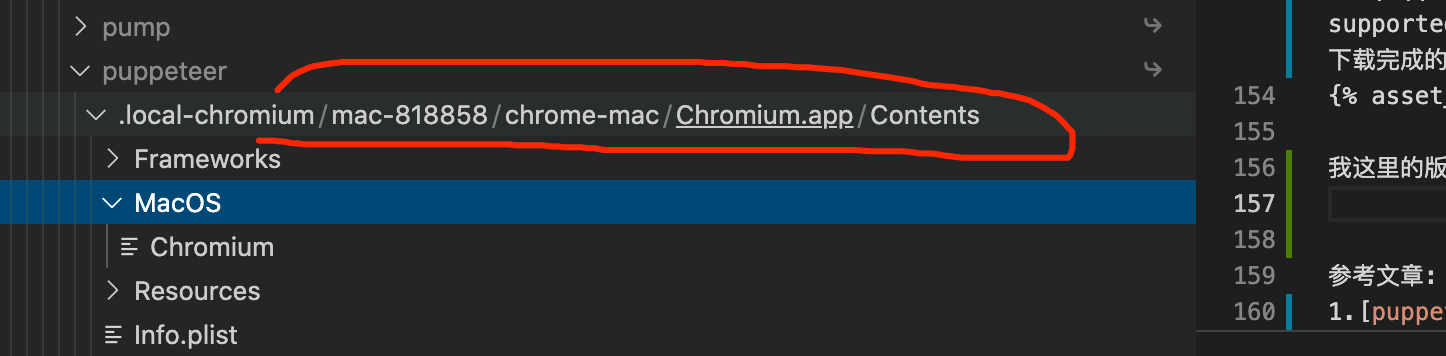 下载完成的标志就是 node_modules/_puppeteer@5.5.0@puppeteer/.local-chromium 文件夹下,有相应的chromium版本,我这里的版本是mac-818858,可以看到下载完成的chromium已经解压了。