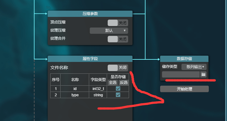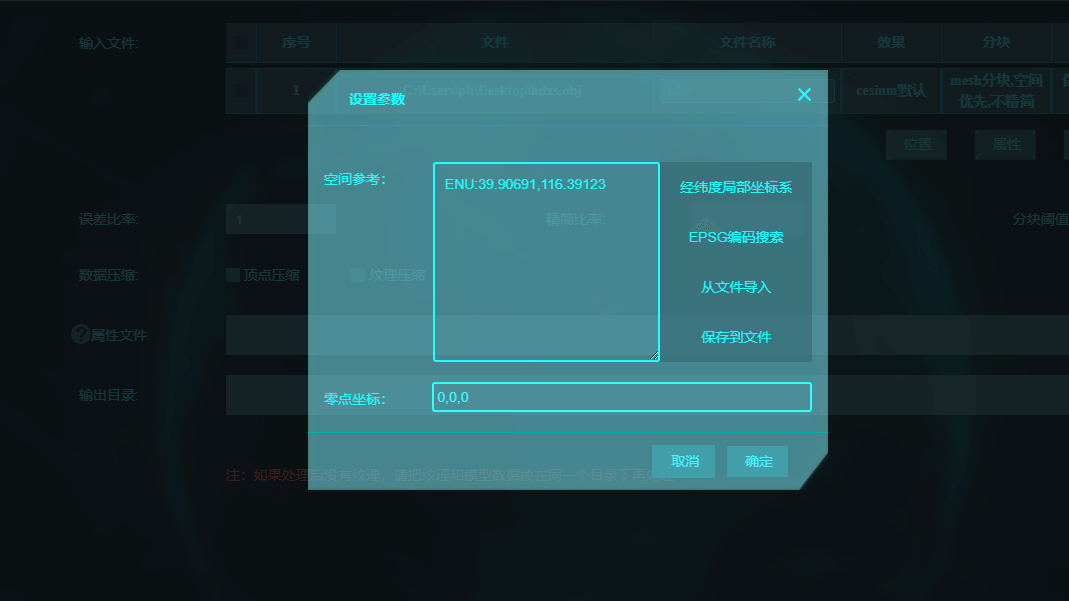 (3) 选择要存储的属性数据,和输出的文件位置,开始处理,就可以将obj模型导出为3dtitle文件了。