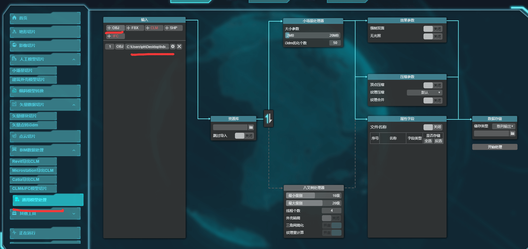 (1) 打开CesiumLab程序,选中通用模型处理工具,选择导出的obj文件。