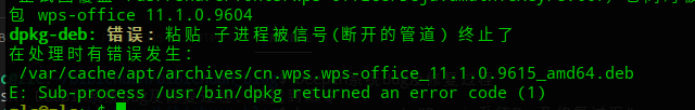 出现了错误:dpkg-deb: 错误: 粘贴 子进程被信号(断开的管道) 终止了