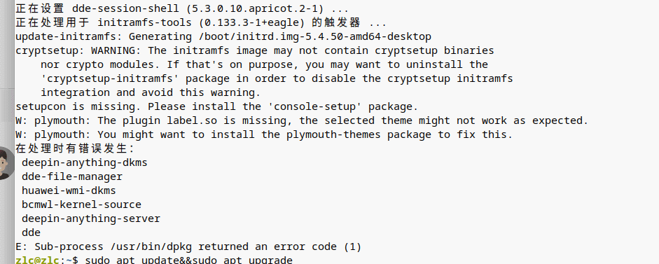 系统版本Deepin 20 Beta,在使用命令行更新系统的时候