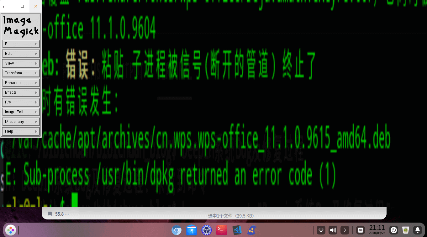 1.dpkg-deb: 错误: 粘贴 子进程被信号(断开的管道) 终止了