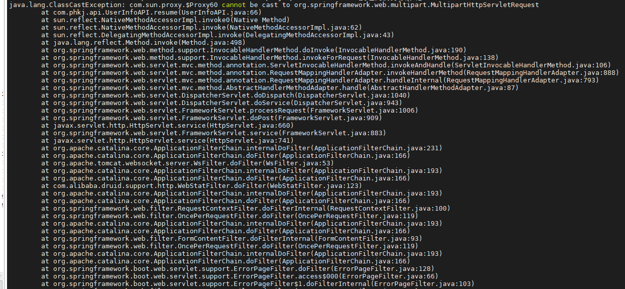 但是在我使用MultipartHttpServletRequest将request强制转换为MultipartHttpServletRequest时,服务器报错了。