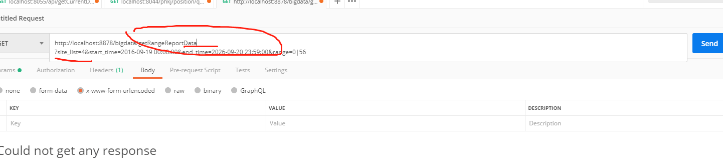 使用了postwoman也是出现了无法获取参数的问题。最后解决的问题,是因为在问号之前有了一个换行,把这个换行删掉之后就可以了。