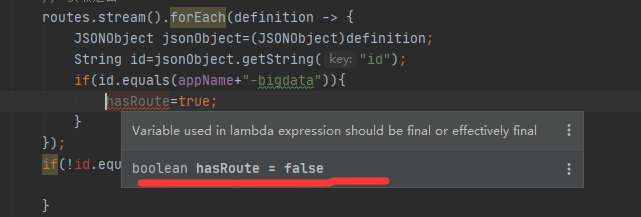 在idea中的stream().foreach中试图改变外部变量的值的时候,会出现这个错误。