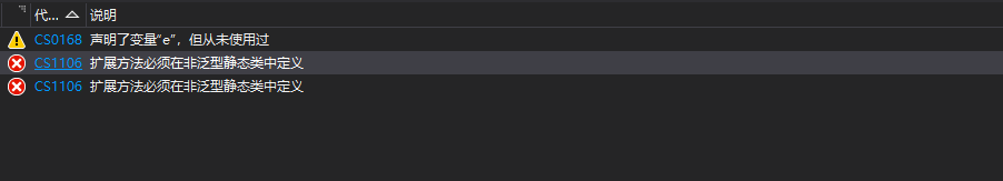 1.扩展方法必须在非泛型静态类中定义 (由于时间紧迫,我也就没有具体的去研究了)