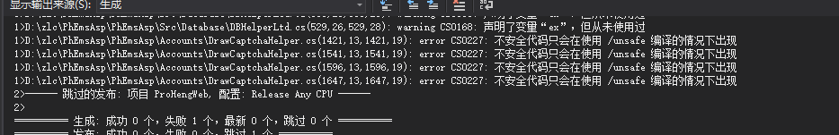 1.发布web应用程序是出现unsafe code (这里给了解决方案)