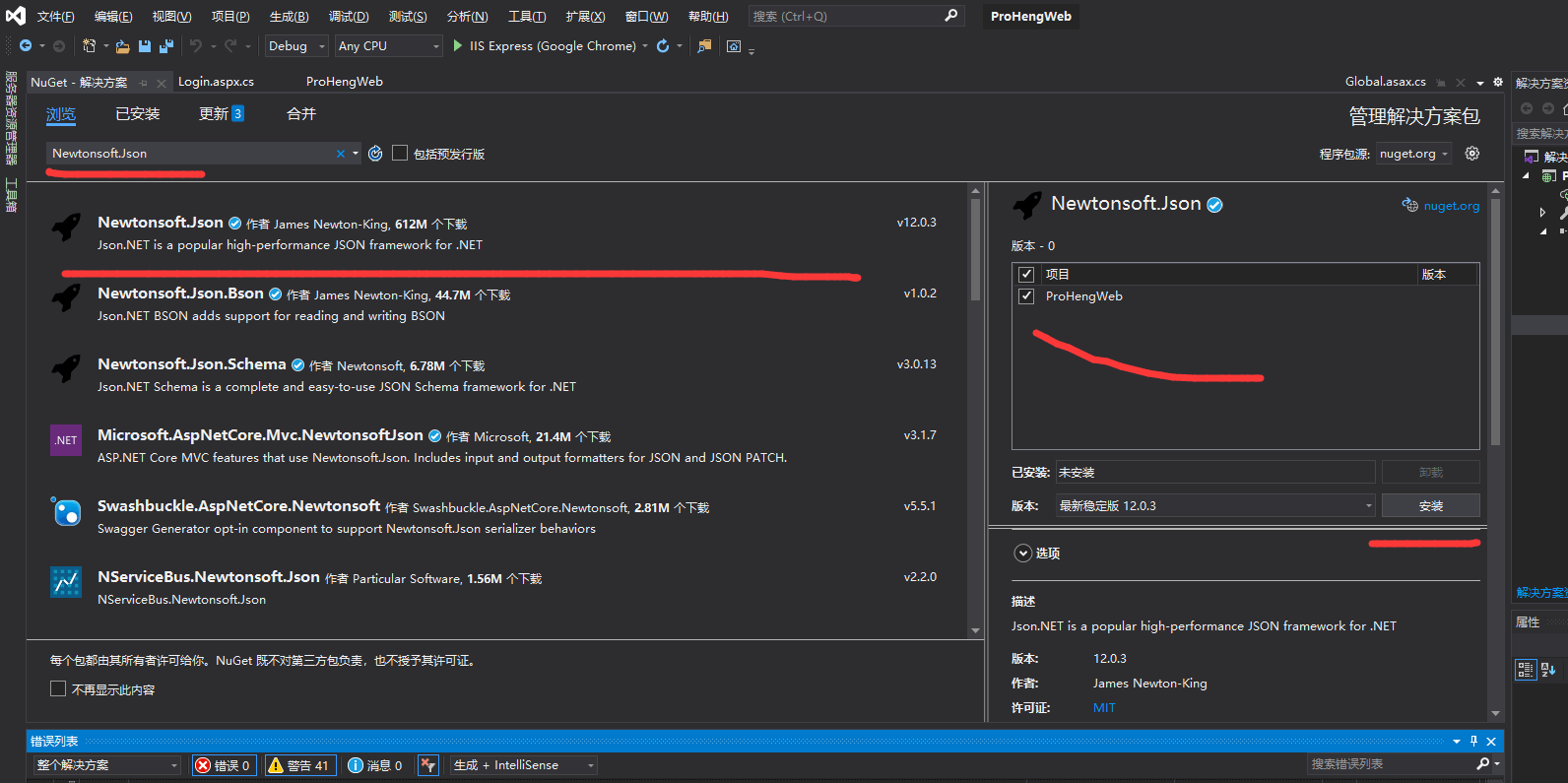 2.无法加载文件或程序集“Newtonsoft.Json”或它的某一个依赖项 (第三步的时候,其实我使用的是界面的方式进行安装了,也是一样的。)
