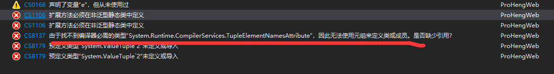 4.由于找不到编译器必需的类型“System.Runtime.CompilerServices.TupleElementNamesAttribute”,因此无法使用元组来定义类或成员。是否缺少引用?