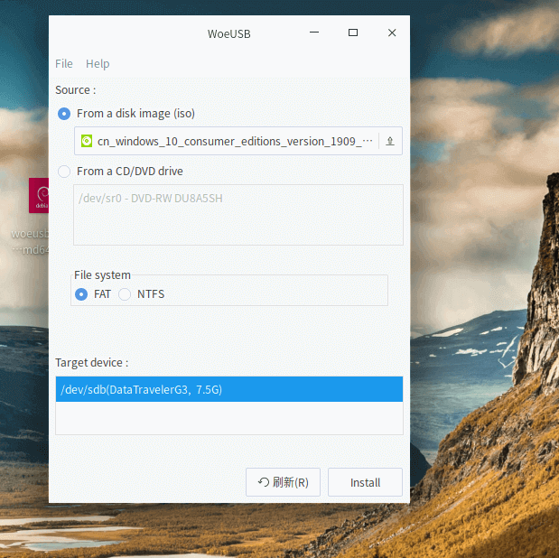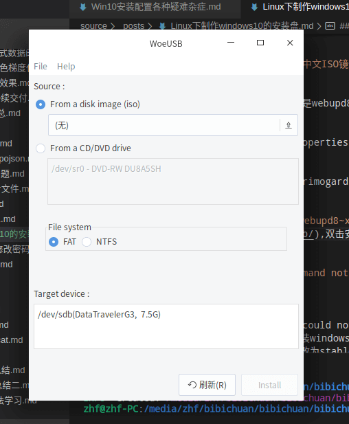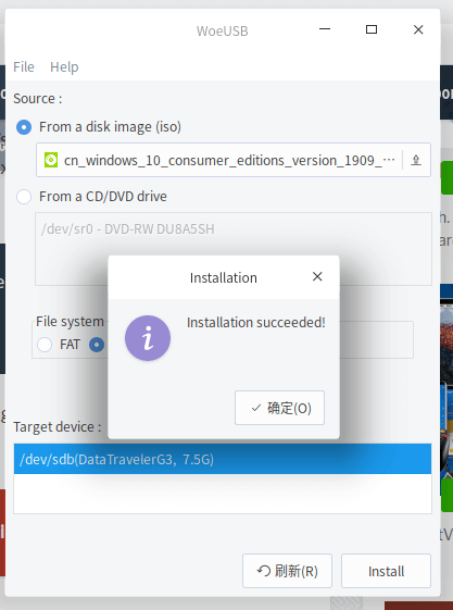 我的电脑是Deepin系统,我想制作windows10的安装盘,在另一台电脑上安装windows。根据很多参考资料,其实能在linux下使用的软碟通之类的软件,几乎是没有,大部分都是讲的使用GParted挂载u盘格式化,复制iso解压文件,然后使用gurb-install安装工具进行引导的安装。后来找到了woeusb这么个工具,决定尝试一下。
