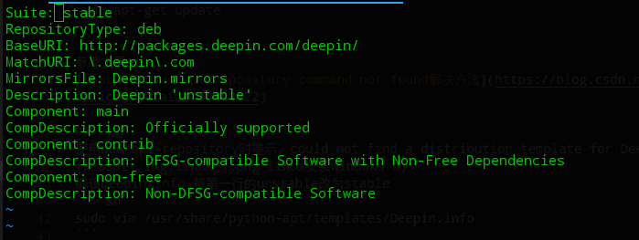1.使用add-apt-repository时提示,could not find a distribution template for Deepin/stable