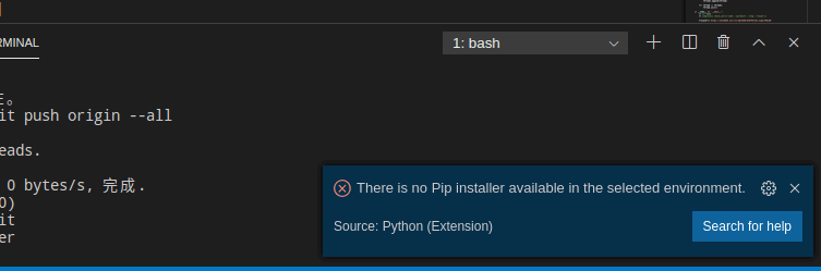 1.VSCode: There is no Pip installer available in the selected environment