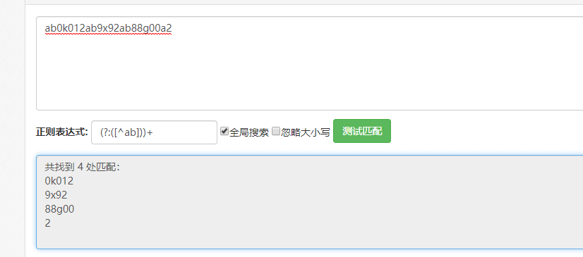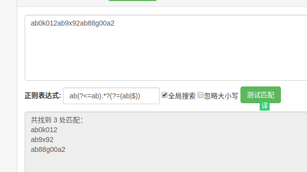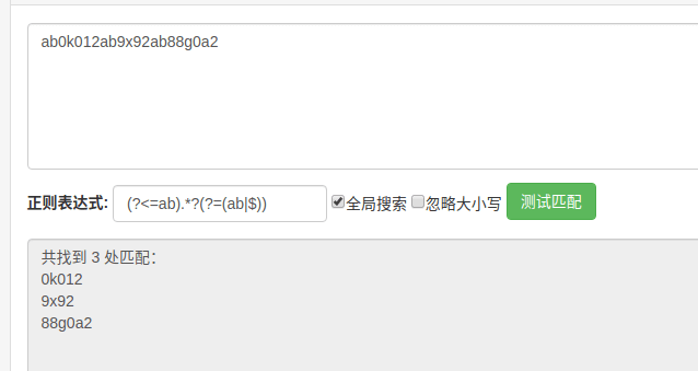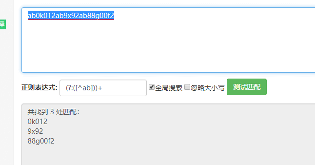 但是不能正确匹配:ab0k012ab9x92ab88g00a2