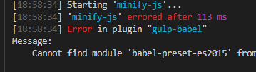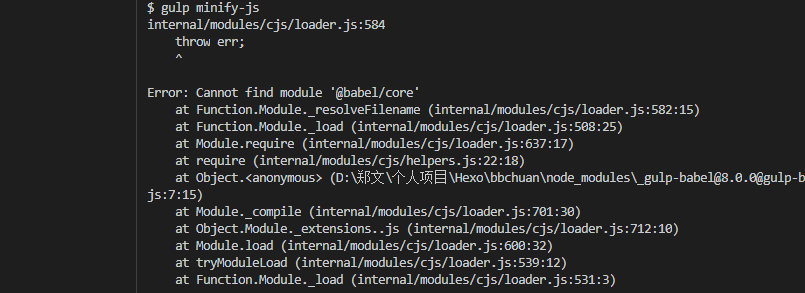 执行gulp scripts,竟然报错了,未找到@babel/core