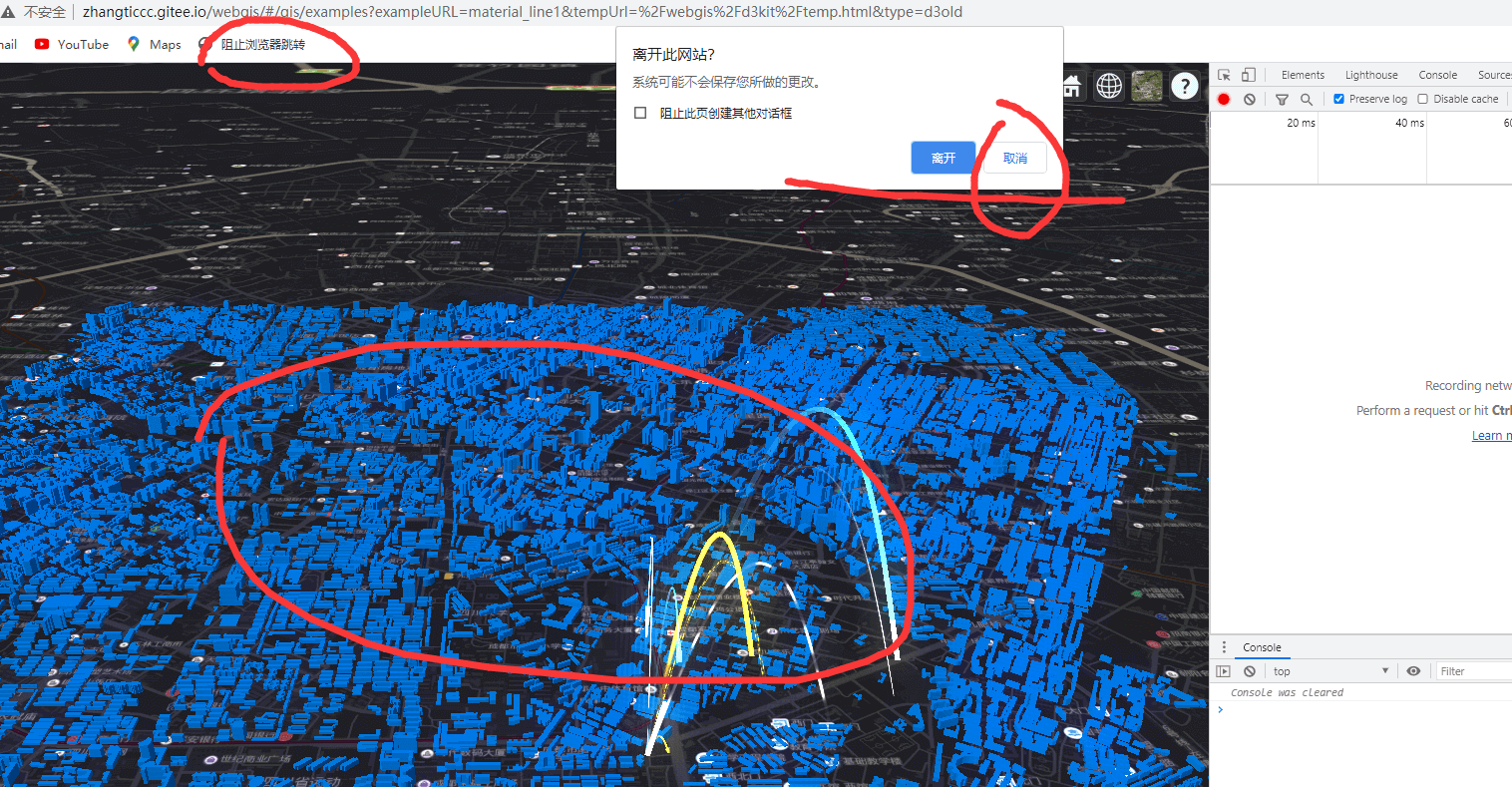 在阻止跳转的网页上,先点击这个阻止跳转的书签,然后就可以打开控制台了。在弹出的提示框中选择取消,就可以留在这个页面了。